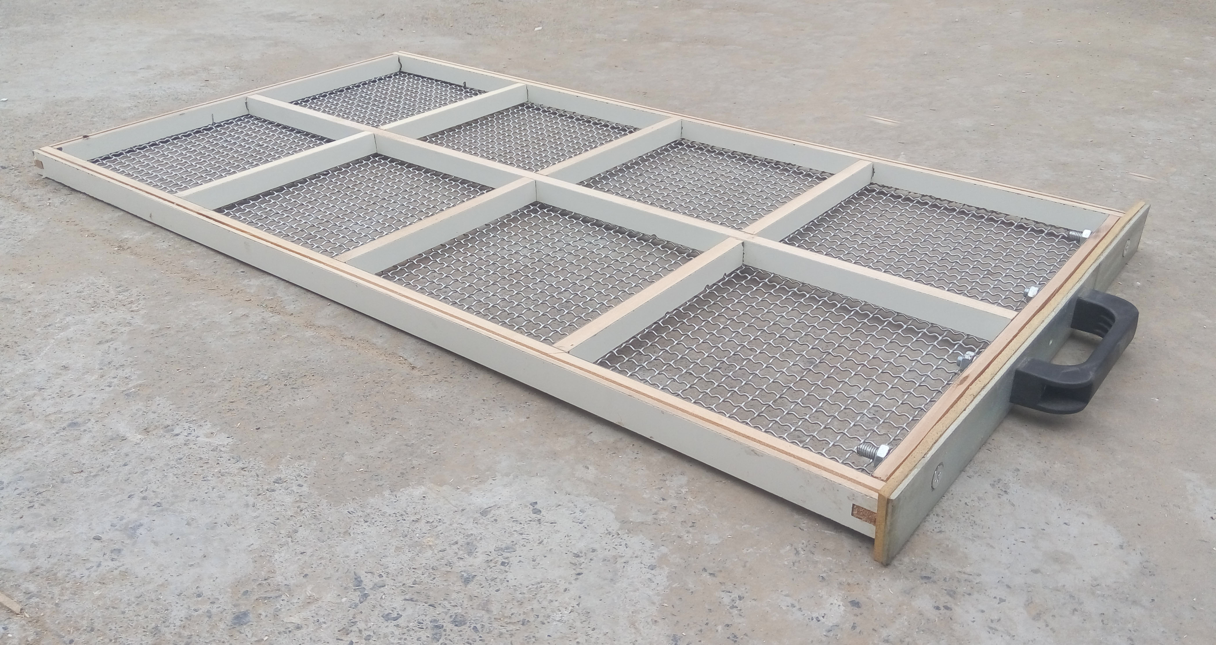 兆豐公司的篩格選用椴木和其他優(yōu)質(zhì)木材,特殊的工藝流程,精心加工制作而成。篩格有標(biāo)準(zhǔn)格和擴大格兩大系列,二十多種規(guī)格,按照國際標(biāo)準(zhǔn)(外形尺寸628×628、640×640、740×740、830×830、1000×1000mm)制作,也可以按照客戶的需求定制。篩格高度根據(jù)各層物料流量和不同的進(jìn)料出料方式進(jìn)行調(diào)整,這樣在能夠滿足生產(chǎn)需要、保證物料正常通過的情況下,節(jié)約空間,提高每層篩格的使用效率。